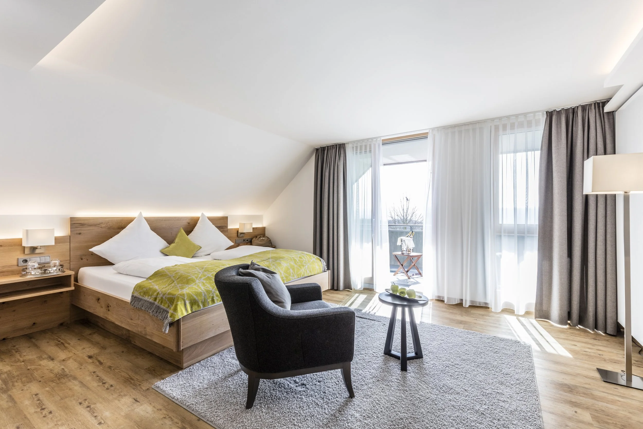 one double bed (with 2 mattresses), spacious bathroom with shower, air conditioning, barrier-free